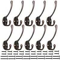 Ambipolar Heavy Duty Metal Decorative Dual Coat Hook Type-2 / Hat Hook - Wall Mounted (0.7" Screws Included), Wall Hook, Double Coat Hanger, 10 Pack (Oil Rubbed Bronze). |