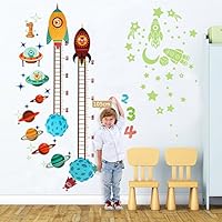 OurWarm Planets Rocket Wall Sticker Baby Height Growth Chart + Glow in The Dark Stickers, Growth Chart for Kids Bedroom Nursery Home Decorations |