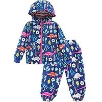 KISBINI Boys' Cartoon Dinosaur Windproof Jacket Raincoat and Rain Pant Set |