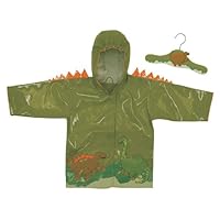 Kidorable Green Dinosaur PU All-Weather Raincoat for Boys With Fun Dino Spikes and Volcano |