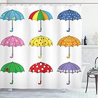 94 | Ambesonne Colorful Shower Curtain, Rainbow Umbrellas with Ornate Polka Dot Butterfly Star Ladybug Planet Patterns, Cloth Fabric Bathroom Decor Set with Hooks | ![]() |