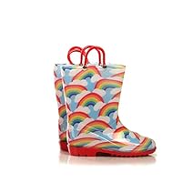 Outee Toddler Kids Rain Boots Rubber Cute Printed with Easy-On Handles |