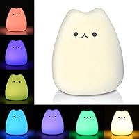 25 Litake LED Night Light, Battery Powered Silicone Cute Cat Carton Nursery Lights with Warm White and 7-Color Breathing Modes for Kids Baby Children (Mini Celebrity Cat)