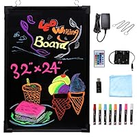 52 Voilamart LED Message Writing Board, 32" x 24" Flashing Illuminated Erasable Message Memo Notice Menu Sign Board with Remote Control, 8 Colors Chalk Marker