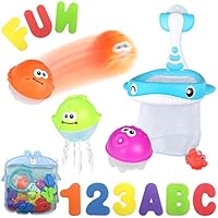 | 53 | Bath Toy Sets, 36 Bath Letters & Numbers, Floating Squirts Animal Toys Set with Fishing Net and Organizer Bag, Boat Catching Game for Kids Babies Infants Toddlers, Bathtub Time Pool Party Toys by MoraBaby |