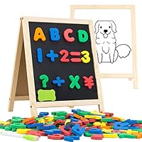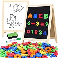 41 INNOCHEER Magnetic Letters and Numbers with Easel for Kids- 133 Pieces Alphabet Magnets, Educational Dry Erase Board - Whiteboard & Chalkboard for Toddlers Writing & Drawing