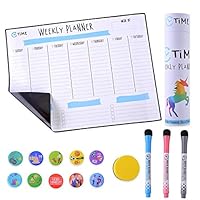 87 Weekly Dry Erase Board for Fridge: 12x16" Whiteboard with Stain Resistant Technology - Bonus 3 Quality Markers, an Eraser and 10 Magnets - Smart Planner: Magnetic Weekly Calendar for Refrigerator by VTIME