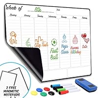 92 Weekly Dry Erase Board Magnetic Calendar | 13" x 17" Magnetic White Board for Fridge & Wall, No GHOSTING |Includes Free Magnetic Eraser, 4 Markers & 5 Buttons |Smart Whiteboard Organizer Planner