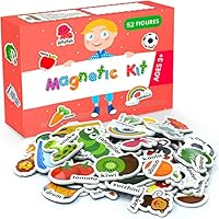 23 Curious Columbus Animal Magnets For Kids. Includes Alphabet Letters. Set of 52 Pieces. Foam Educational Magnetic Toy Objects For Word Recognition. 26 Picture Fridge Magnets and 26 ABC Letters From A-Z