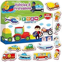 46 34 Foam Magnets for Kids VEHICLES, TRUCKS, PROFESSIONS - Kid Magnets for Refrigerator - Baby Magnets for Fridge - Refrigerator Magnets for Toddlers Babies Children - Toddler Magnets age 1 2 3 old boys by Little World