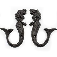96 | Rustic Cast Iron Mermaid Hook Wall Hanger Decor Beach Nautical Towel Holder Metal Wall Mounted Heavy Duty (Brown) by DH+ | ![]() |