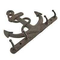 86 | Coat Key Holder 4 Hook Rack, Rustic Cast Iron Anchor, Nautical Wall Decor, 10-inch by Moby Dick |