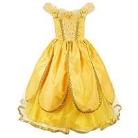 ReliBeauty Little Girls Layered Princess Belle Costume Dress up, Yellow |