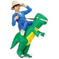 Spooktacular Creations Inflatable Costume Dinosaur Riding a Raptor Air Blow-up Deluxe Halloween Costume - Adult Size |