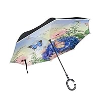 89 AUUXVA SEULIFE Reverse Inverted Umbrella Floral Flower Butterfly Spring Double Layer Umbrella Windproof Waterproof for Car Outdoor Travel