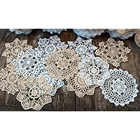 53 Granny's Hutch New lot of 12 Hand Crochet Doilies 7" White & Natural Vintage Wedding Tea Party