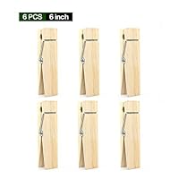 RIVERKING big/giant clothes pins,natural wooden craft clips,photo wooden clips for photo paper diy,wedding and bathroom decoration(6pcs,6 inch) |