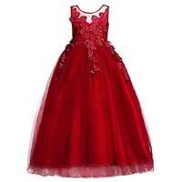 81 | 5-16T Little/Big Girls Floor Length Lace Tulle Bridesmaid Dress Flower Pageant Party Wedding Maxi Evening Dance Gown by IWEMEK |