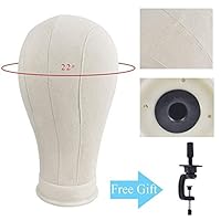 91 | 22" Cork Canvas Block Head Mannequin Head Wig Display Styling Head With Mount Hole (Table Clamp Included) by Ba Sha |