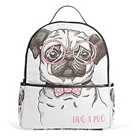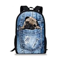 76 | Book School Bag Kids Stylish Lightweight Daypack Durable Backpack Denim Pug Print by Dellukee | ![]() |
