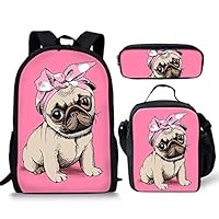 83 | Pink 3D Animal Pug Dog Backpacks Set 3 Pieces Lunch Bag Pen Bag for Kids Back to School Lightweight Daypack for Boys Girls by Foruidea |