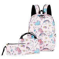 ABage School Bag 3 backpack Set Cute Lunch Bag Pattern Bookbag with Pencil Case for Girls and Boys |