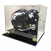 65 | Helmet Display Case Football Helmet Acrylic Case Full Size Helmet Case Black Acrylic Base Gold Risers Mirror Back P368 by Pennzoni Display |