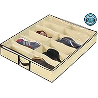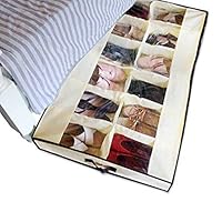 Shonpy Men/Adults 12 Cells See Through Underbed Shoe Storage Bag Organizer, Beige |