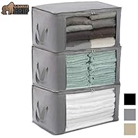 80 | Clothes Comforter Storage Bag Organizers, Large Foldable Blanket Storage Organizers, Breathable Closet Shelf Containers Bins with Clear Window,Reinforced Handles,Sturdy Zippers Grey Set of 2 by stylishom |