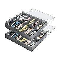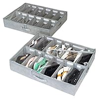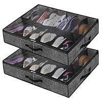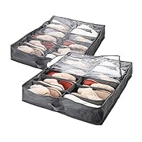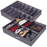 storageLAB Under Bed Shoe Storage Organizer, Adjustable Dividers - Set of 2, Fits 24 Pairs Total - Underbed Storage Solution (2-Pack Basic) |