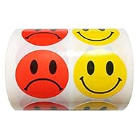45 Wootile Yellow Smiley Face Happy Stickers and Red Sad Frowny Face Stickers for Teachers 1 Inch Round Circle Dots 500 Labels Per Roll