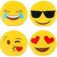 63 Dreampark Emoji Pillow Set, 4 Pack Smiley Pillow Emoticon Cushion Stuffed Plush Round Yellow Soft Pillow Valentines Gifts (13 inches)