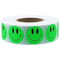 73 Hybsk 1 Inch Fluorescent Green Smiley Face Stickers Happy Face Stickers Adhesive Labels Total 1,000 Per Roll (1 Roll)