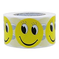 71 Hybsk Yellow Smiley Face with Eyelash Happy Stickers 1.5" Round Teacher Labels 500 Total Per Roll