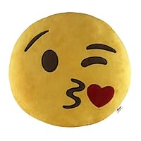 48 KINREX Emoji Pillow Toys For Kids And Adults - Blowing Kisses Yellow Pillow Cushion - Birthday Presents For Boys, Girls, And Adults - 35 cm