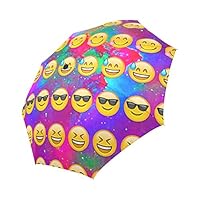 89 Fashionable Emojis Storm-Resistant Auto Open and Close Folding Travel Umbrella, Funny Portable Foldable Sun Rain Umbrella by INTERESTPRINT