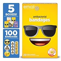 38 Emoji Kids Bandages with Emoji Shaped Bandages, 100 ct | Adhesive Antibacterial Bandages for Minor Cuts, Scrapes, Burns. Great Stocking Stuffer or White Elephant by CARE BAND