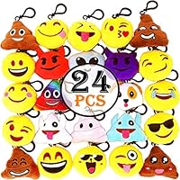 14 OHill 24 Pack Emoji Plush Pillows Mini Keychain for Birthday Party, Home Decoration, Classroom Rewards and Party Favor