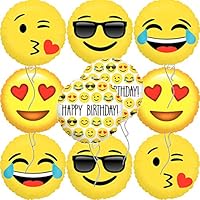 97 Ivenf 18" Mylar Reusable Emoji Funny Faces Happy Birthday Party Balloons Party Supplies, 10 Pack Set
