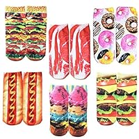 30 Womens Girls 3D Novelty Colorful Funny Cat Food Ankle Socks, Cute Low Cut Socks by Zmart
