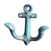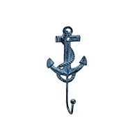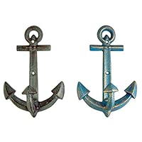 33 Primitive Blue and Grey Cast Iron Anchor Wall Hooks, 7 1/2 Inches, Set of 2 by Chesapeake Bay