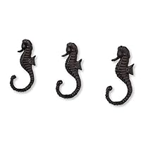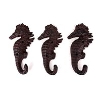 75 JumpingLight 3 Cast Iron Antique Style Seahorse Coat Hooks Hat Hook Rack Towel Nautical Beach Cast Iron Decor for Vintage Industrial Home Accessory Decorative Gift