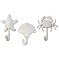 19 Sea Treasures Wall Hooks - Set of 3 - Antique Weathered Hangers for Coats, Aprons, Hats, Towels, Pot Holders - Scallop, Sand Dollar, Sea Star / Starfish by Midwest-CBK