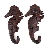 66 Cast Iron Nautical Seahorse Coat Key Wall Hook Set of Two Coastal Beach Decor by MD