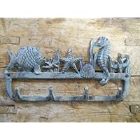 92 (NEW Brackets) Cast Iron Nautical Towel Coat Hooks Hat Hook Key Rack Seahorse, Starfish, Fish