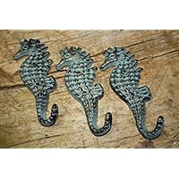 90 Cast Iron Nautical Seahorse Coat Hook Set of Three Coastal Beach Decor by MD