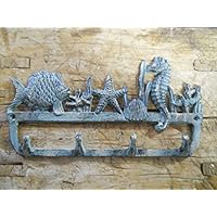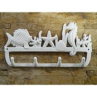 13 Cast Iron Wall Hanger - Sea Horse Stars and Shells with 4 Hooks - Wall Mounted Decorative Rack for Coasts, Hats, Keys and More - with Screws and Anchors by Comfify