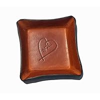 52 Twin Saints 3rd Leather Tray. Distressed Leather Valet with Heart.