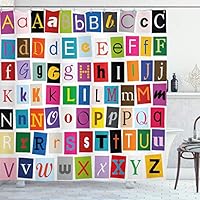 98 | Ambesonne Abstract Shower Curtain, Alphabet Letters Colorful Typography Languages Principle Art Illustration, Cloth Fabric Bathroom Decor Set with Hooks | ![]() |