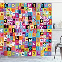 99 | Ambesonne Abstract Shower Curtain, Colored Alphabet Letters Pattern Education School Puzzle Children Graphic Print, Cloth Fabric Bathroom Decor Set with Hooks | ![]() |
